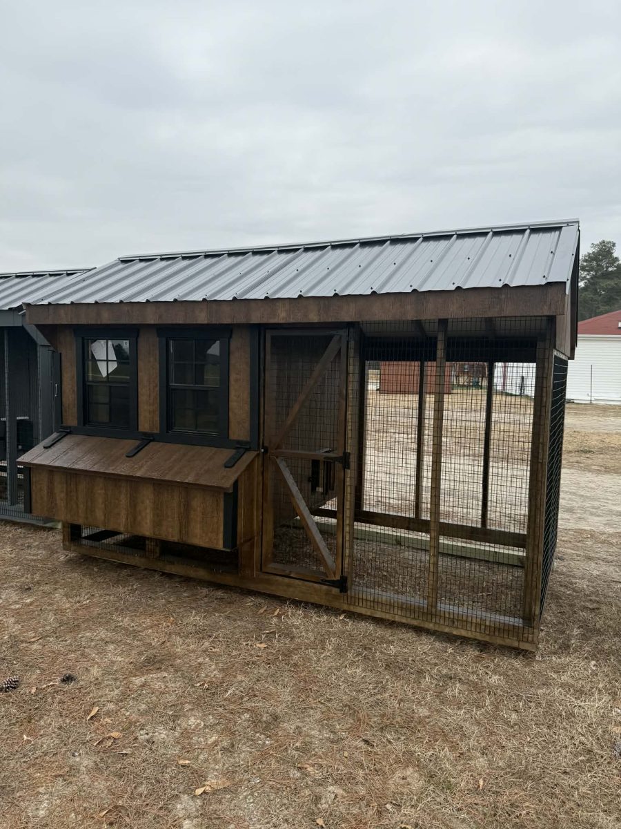 7X10 QUAKER COMBO CHICKEN COOP $4,975 RTO 3 YR APPROX $230/MONTH RED /CHESTNUT/BLACK