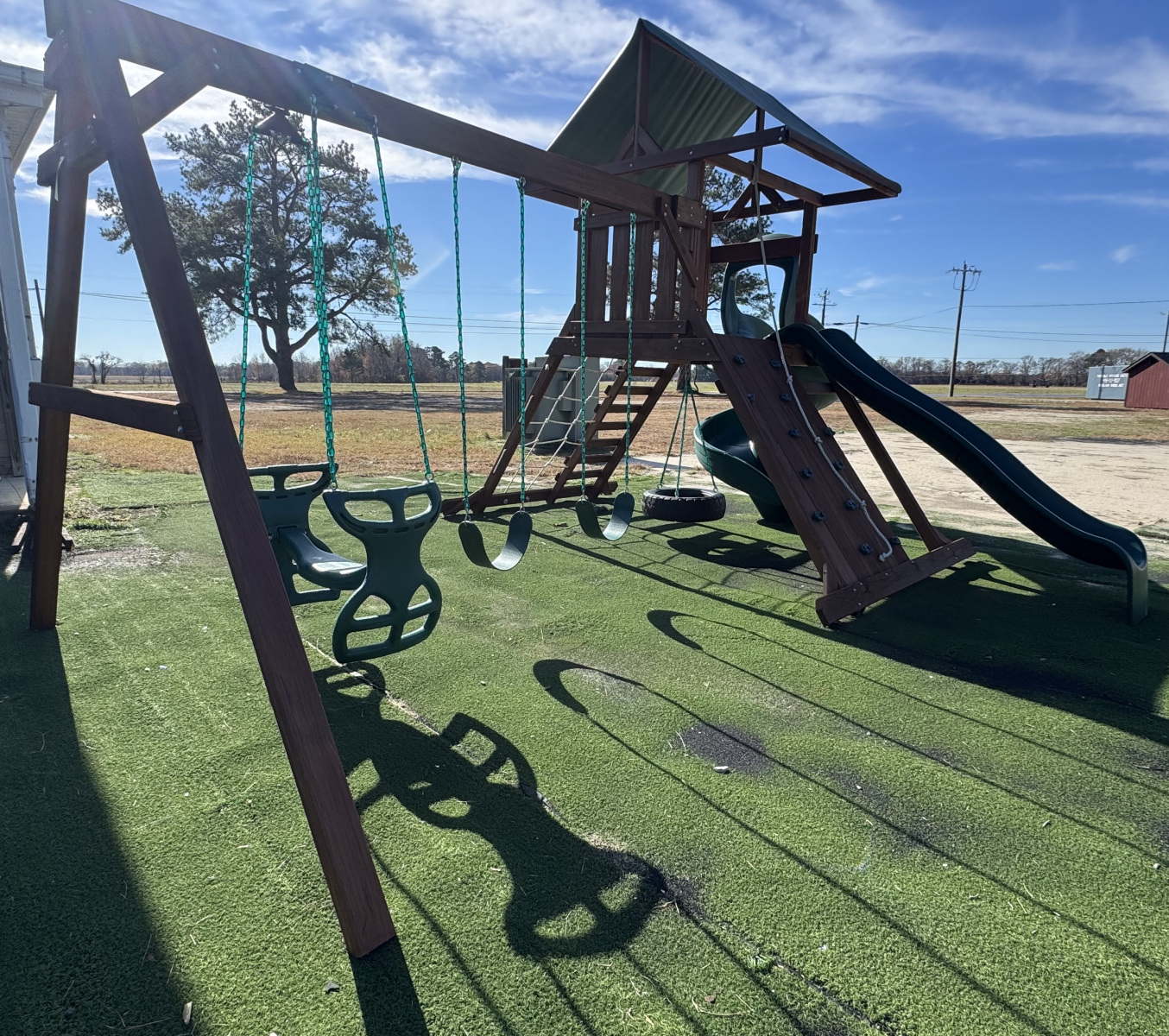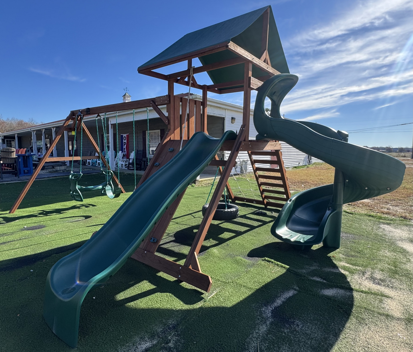 Climbing Tower Pic 3 - 2 swings, tire swing, plastic glider and 5' spiral slide $3671 - located in Mardela Springs, MD