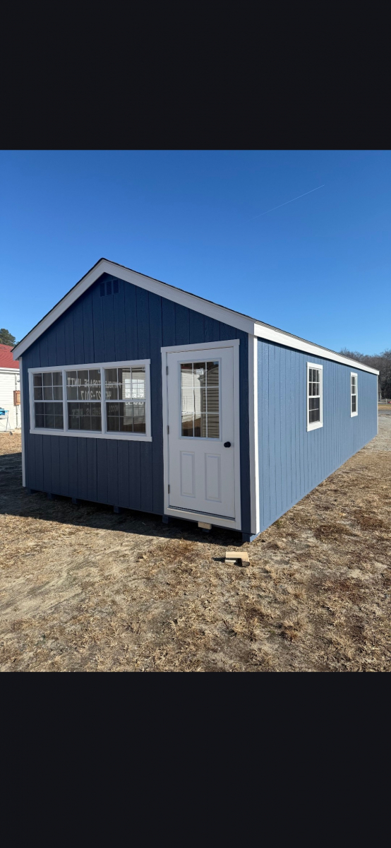 14X32 DUTCH BARN SMARTSIDE $14,500 RTO 3 YR APPROX $712 /MONTH LIGHT GRAY/BLACK/PEWTER DOOR PLATE LARGER----------------- PICTURE WINDOWS ADDED 3'9 LITE DOOR /GRIDS PARTITION/3'DOOR 12 ELECTRICAL BOXES