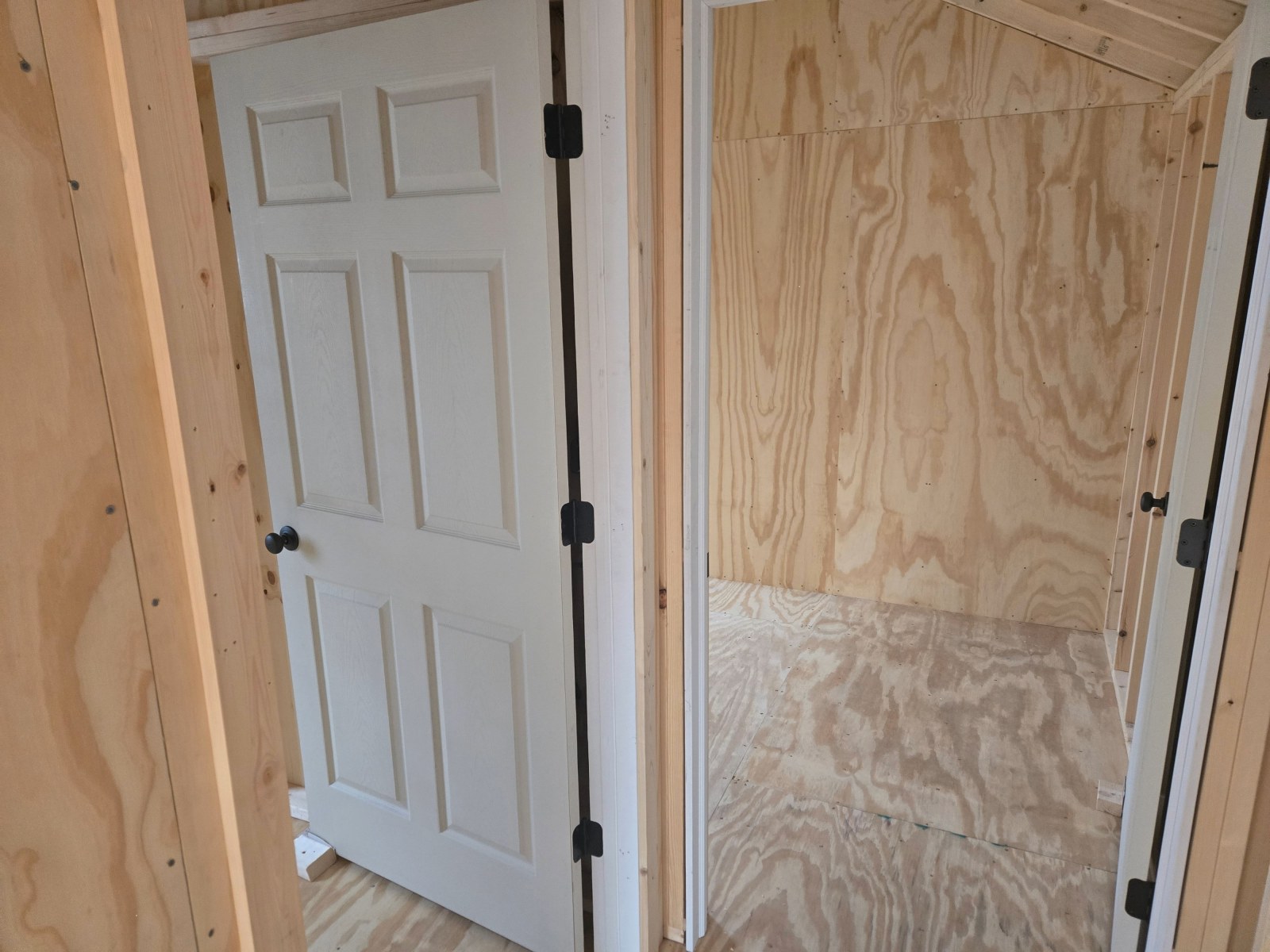 MARDELA SPRINGS LOCATION 6X8 MINI BARN SMARTSIDE $3006 RTO APPROX $148/MONTH WHITE/BLACK/BLACK DOOR PLATES VENTS TREATED FLOOR
