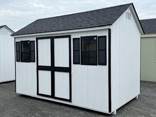 8x12 a-frame vinyl white/black/black $4670 RTO 3 YR APPROX $217/MONTH