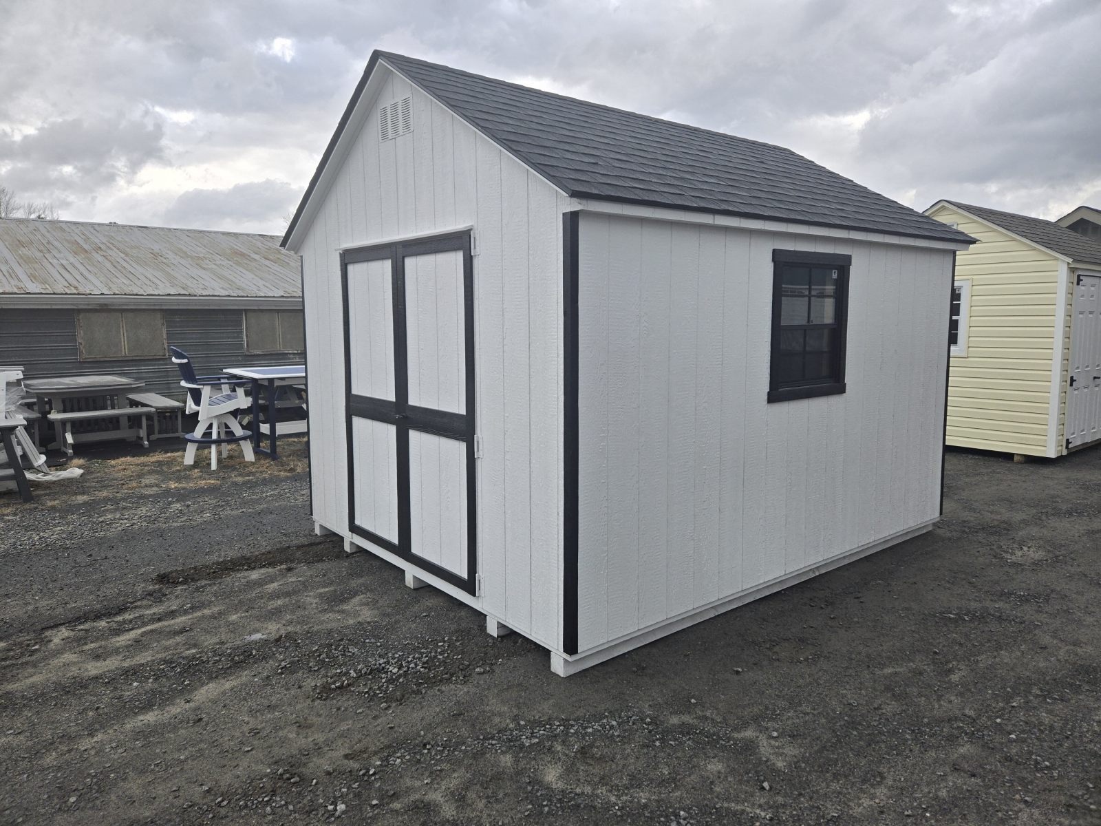 8x12 a-frame vinyl white/black/black $4670 RTO 3 YR APPROX $217/MONTH