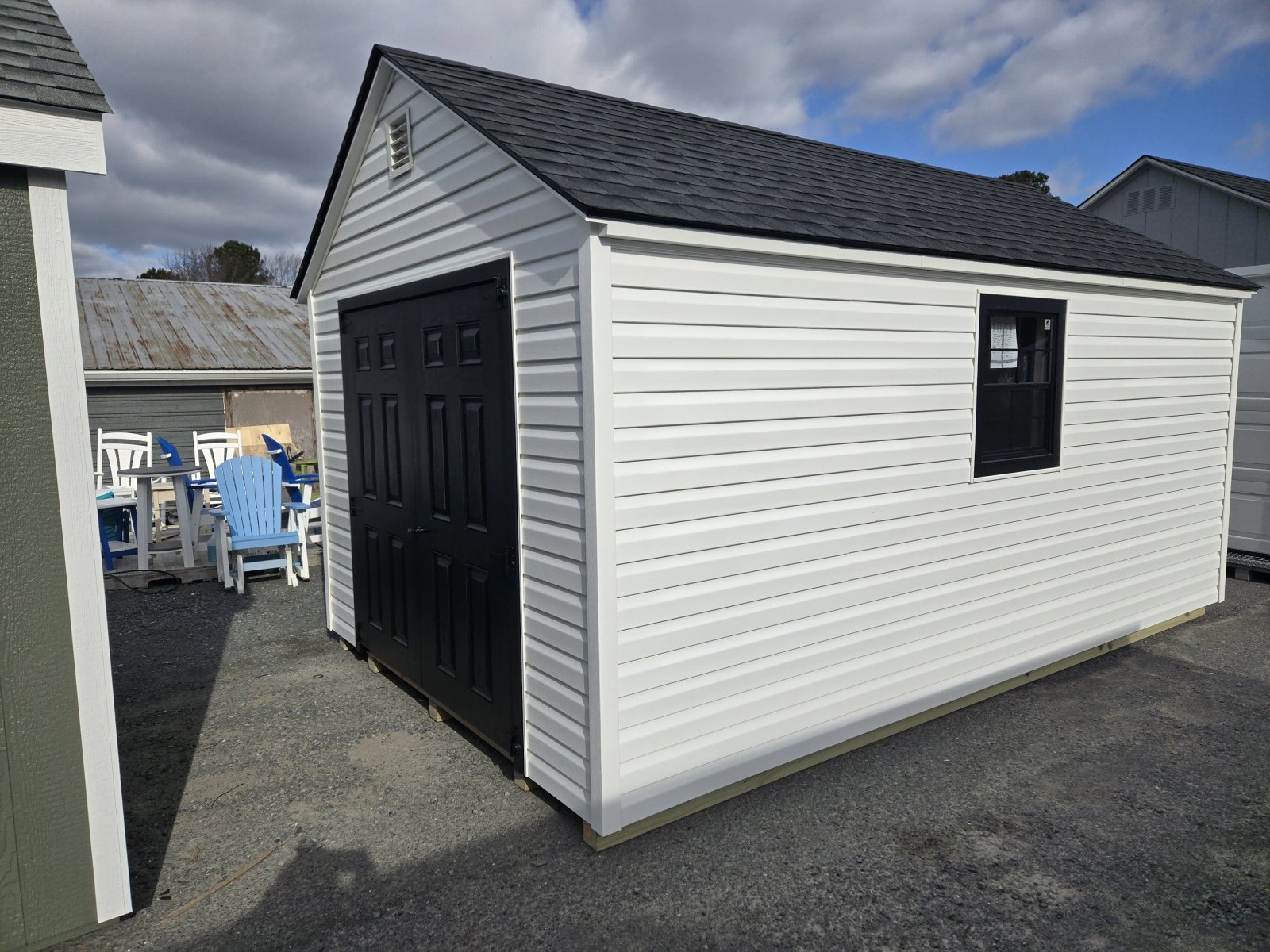 10x16 A FRAME VINYL BISHOPVILLE LOT RTO 3 YR APPROX $298/MONTH WHITE/BLACK/BLACK